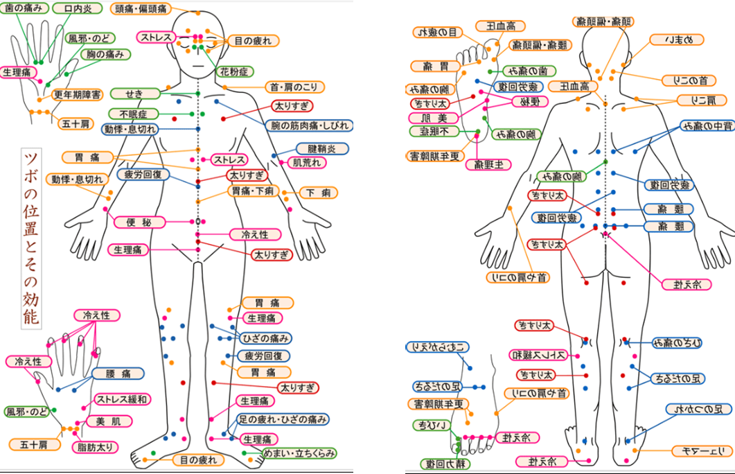 ・一般的な症状等の「ツボの位置」は、次を参考にしてください。